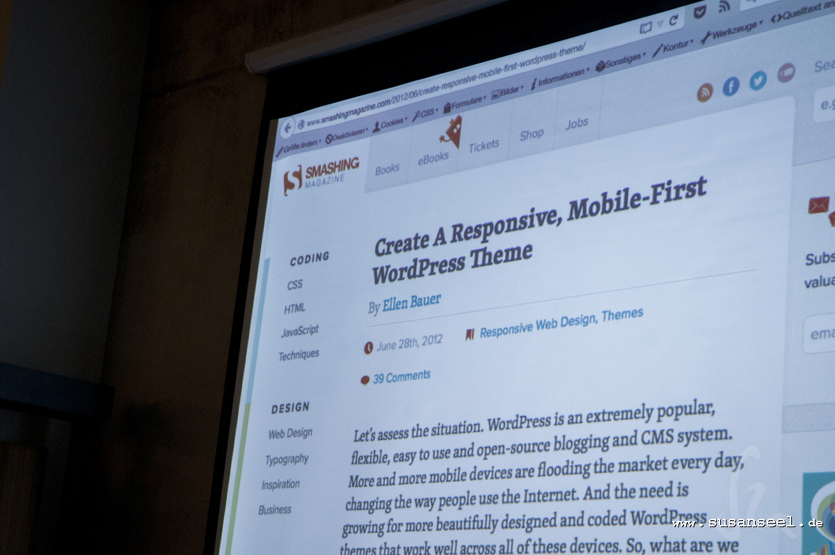 Seinen Vortrag hat er frei und ohne Folien gehalten, aber es gibt eine Zusammenfassung als Blogbeitrag auf seiner Website: Mobile First ist Content First